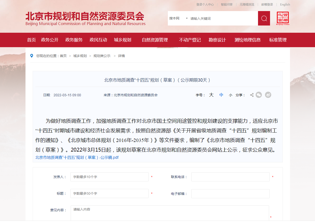 地大熱能地熱+多能互補網(wǎng)訊:《北京市地質(zhì)調(diào)查“十四五”規(guī)劃(2021—2025年)(草案)》(以下簡稱《草案》)3月15日起在市規(guī)劃自然資源委網(wǎng)站公示,聽取公眾意見,公示期30天。《規(guī)劃》提出,北京市將率先對首都功能核心區(qū)地熱能等開展綜合地質(zhì)調(diào)查評價,提供地質(zhì)安全保障。社會公眾對該《規(guī)劃》如有意見建議,可在4月14日前登錄北京市規(guī)劃自然資源委網(wǎng)站留言。