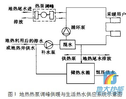 以往計算分析說明[:地?zé)?a href="http://www.yeji999.com/t/熱泵供暖.html" >熱泵供暖系統(tǒng),以地?zé)峒?a href="http://www.yeji999.com/t/熱泵.html" >熱泵調(diào)峰供暖方式的供暖成本和投 圖1地?zé)?a href="http://www.yeji999.com/t/熱泵.html" >熱泵調(diào)峰供暖與生活熱水供應(yīng)系統(tǒng)示意圖資低于熱泵單獨作熱源的供暖方式。