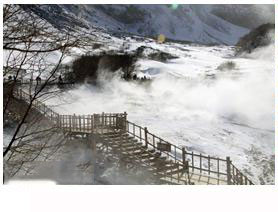 | 聚龍泉位于長白山北坡,大約距長白瀑布900米的地方,在10Cm平方米的地域,有30多眼泉水噴涌而出,經科學工作者測定,水溫最高可達82℃。這里,不論冬夏,總是熱氣蒸騰,霧氣繚繞,特別是嚴寒的冬季,在皚皚白雪的襯托下,溫泉更是云遮霧障,猶如神秘的仙境。溫泉附近長年沉淀下來的礦物質,有紅、褚、黃、青、綠等等顏色,好似美麗的陶瓷。一種清淡的硫磺味在空氣中飄浮。還有珍珠似的氣泡冒出水面,吐出開鍋似的聲音。 如果細心觀察,溫泉附近的草還是鮮活翠綠的!只要游人高興,還可以在大雪紛飛中露天野浴,實在是妙趣橫生。 |