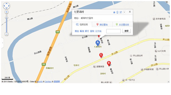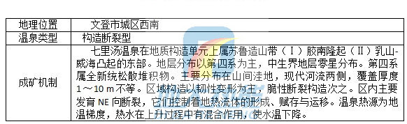| 威海七里湯溫泉風景 依托溫泉資源修建的溫泉游泳館、溫泉洗浴休閑廣場等一批娛樂設施,成為當地人休閑度假的首選之地,也成為吸引外地游客的一個亮點。另外,文登市絲綢廠利用溫泉水進行繅絲,制作出的絲綢柔軟、細膩,光澤艷麗,產品遠銷美國、日本、香港等地,也獲得了良好的效益。
