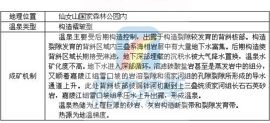 川東仙女山溫泉風景仙女山溫泉地處達州市仙女山腳的銅缽河畔、仙女山國家森林公園,距平灘場鎮1公里。據勘測,該溫泉水質優良,水溫適宜,流量大并且穩定,富含 多種對人體有益的微量元素和礦物質。其中硒和鍶的含量超過國家級規定的標準,對人體具有較好的保健功能。經預測,該溫泉可達國家級溫泉標準,開發的前景廣闊,開發價值高。規劃將溫泉水引至對巖竹海中進行開發,新建接待服務設施,開展游泳、沖浪、醫療保健、休閑度假等活動項目。擴建平灘經溫泉到馬家的公路,新建景區游道,完善電力設施、通訊設施和提高電視收視效果,達到日接待能力上千人次的規模。