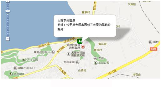 云南下關溫泉風景下關溫泉,位于距大理市(下關)西3公里的西洱河峽谷中,在昆畹公路即320國道旁,原名大理“德勝關”,又名塘子鋪,現附近的村子叫青菜莊。據《趙州志》記載:“德勝鋪,北通太和縣(今大理古城),有德勝關市。”由此可知原為大理西通保山的關隘要塞,后為集市,又因有大理溫泉而得名。大理下關溫泉泉水從石罅中涌出,大理下關溫泉流量每天為200噸,水溫為76℃,含有碳酸鹽等十多種礦物質,水質優良,浴后皮膚滑潤,對皮膚病、風濕病等有一定的療效。